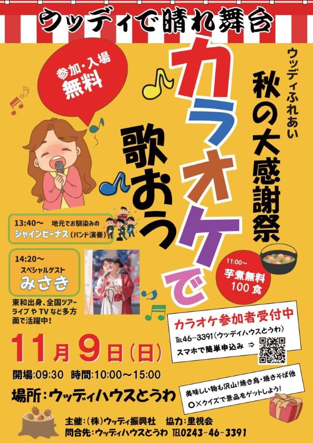 当日は、地元のアマチュアバンドの演奏やカラオケで楽しんでいただきます。